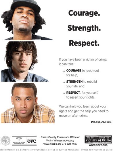 To report crimes involving gang violence and/or narcotics, contact your local police department. If you are a victim of a crime involving gang violence and/or narcotics, contact the Essex County Prosecutor's Office of Victim-Witness Advocacy at: 973-621-4687.